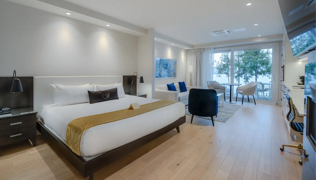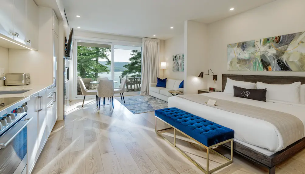 Ripplecove offers various elegant accommodations: the rooms of the classic building, the suites of the Lake Massawippi Pavilion, the modern terrace-condos, or the elegant villas. Each space creates a warm and luxurious atmosphere, perfect for winter evenings.