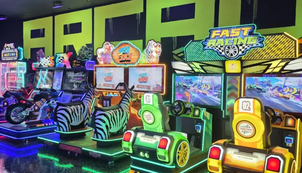 Dive into a world of modern arcade games with a vibrant neon atmosphere.