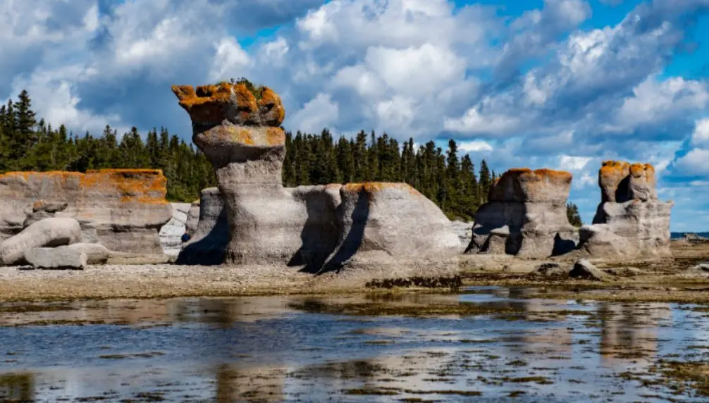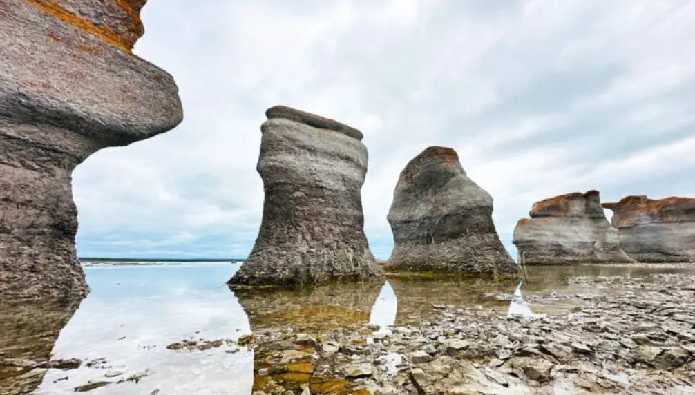 Most visitors reach the islands by boat from nearby coastal communities such as Havre-Saint-Pierre. Once there, walking trails lead through landscapes where nature has sculpted towering rock formations over thousands of years.