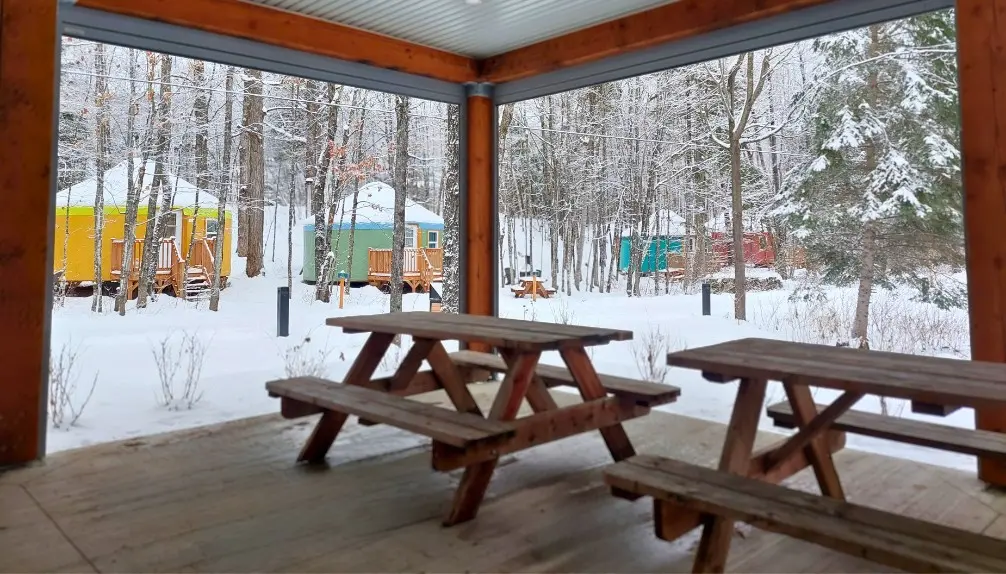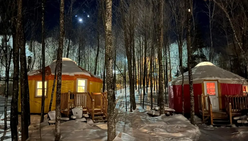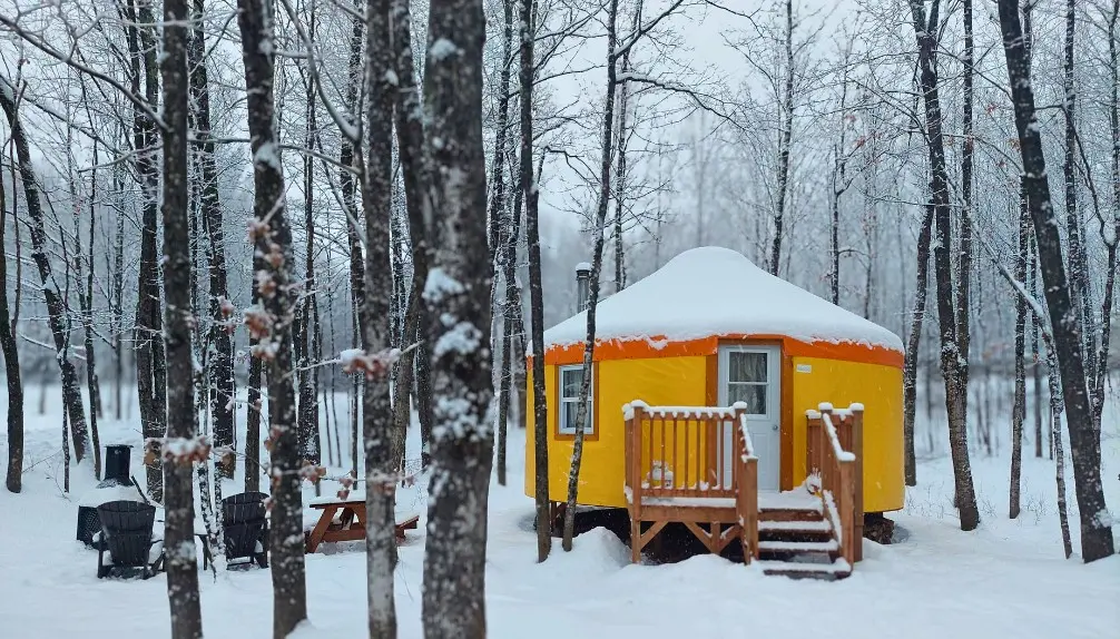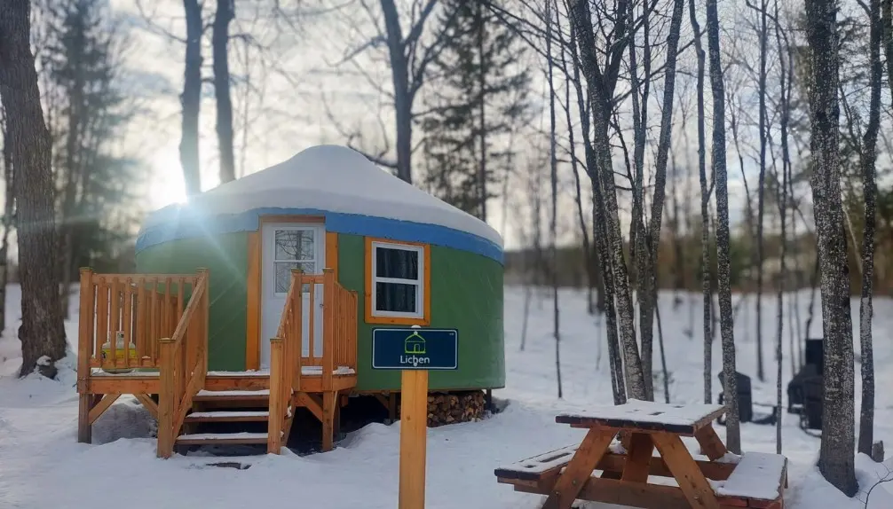 In addition to outdoor activities, the park offers nature-based accommodations adapted to the cold season: six cozy yurts as well as a forest refuge. Travelers have access to a complete service building, including bathrooms, laundry facilities, and hot showers—perfect for warming up after a day of snowshoeing or an exhilarating sledding session.