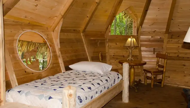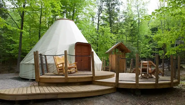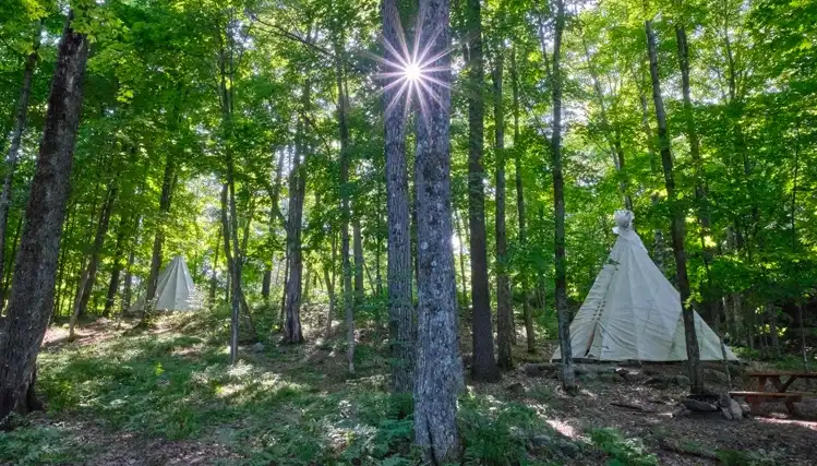 In the summer season, it is possible to take advantage of different ready-to-camp sites such as the house on stilts offering a tropical vacation atmosphere, prospector and log cabins, wi-tents or even tipis offering rustic comfort.