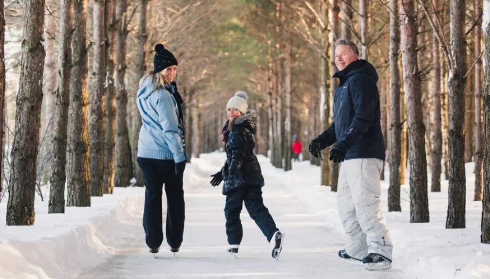 Skating in the trails of a forest, day or night, remains an activity that you absolutely have to experience! Well sheltered from the winter wind, spinning on very smooth ice maintained by zambonis, with a picture of pines laden with snow, it's quite magical!